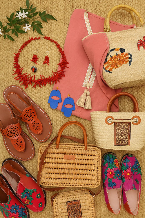 Plateau Artisan en Fibres Naturelles avec Poignées en Cuir