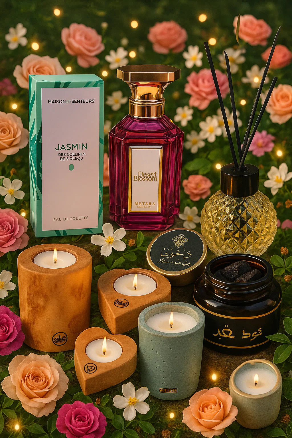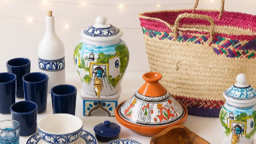 Bougie artisanale “Fleurs de Carthage” en pot céramique peint à la main