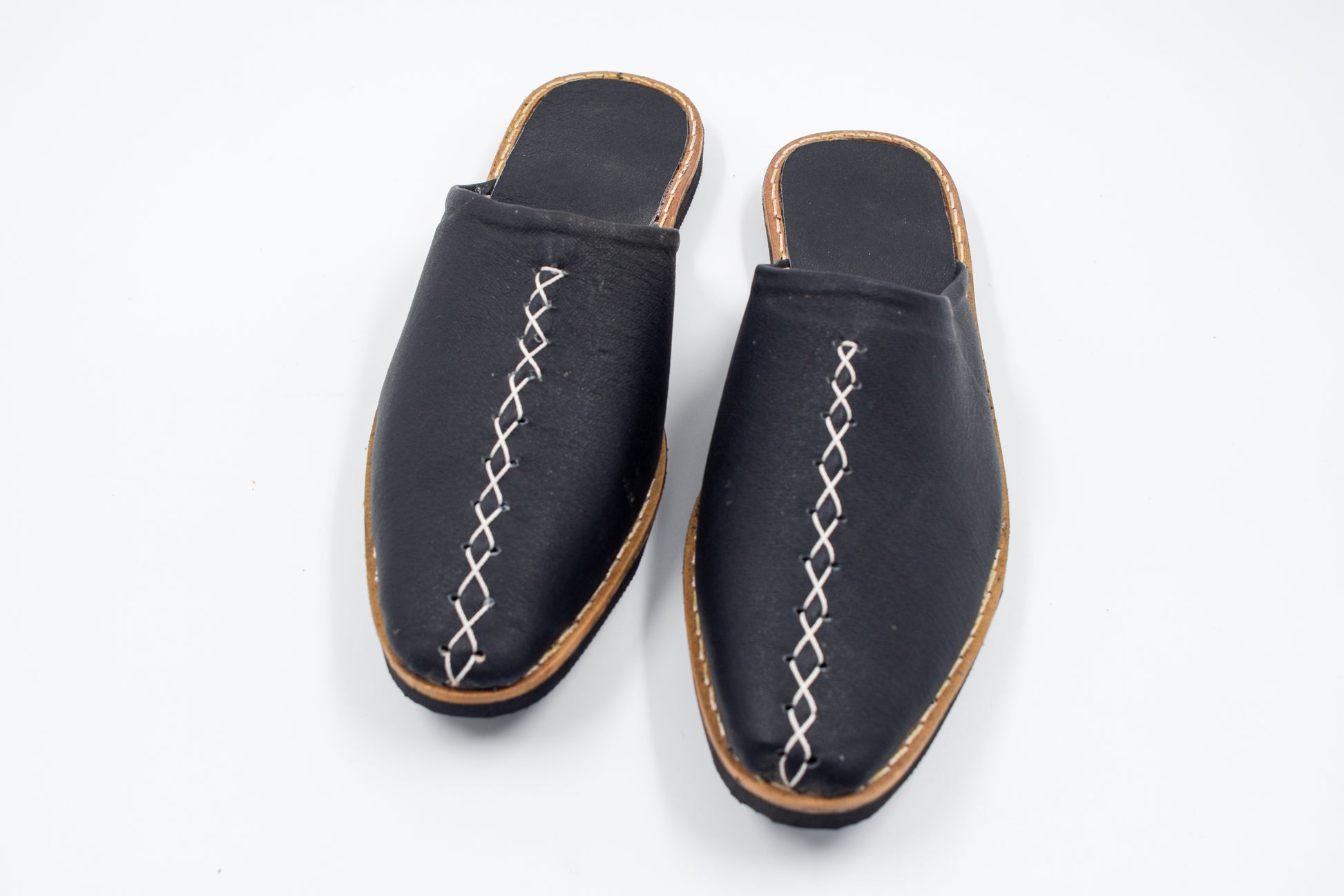 Alliez élégance et confort avec ces superbes babouches tunisiennes artisanales en cuir véritable. Fabriquées et cousues à la main par des artisans tunisiens, elles reflètent un savoir-faire traditionnel transmis de génération en génération. Leur design épuré, rehaussé d’une couture décorative blanche, leur donne un style à la fois authentique et moderne. Légères, souples et résistantes, ces babouches sont idéales pour la maison, la détente ou pour compléter une tenue traditionnelle.