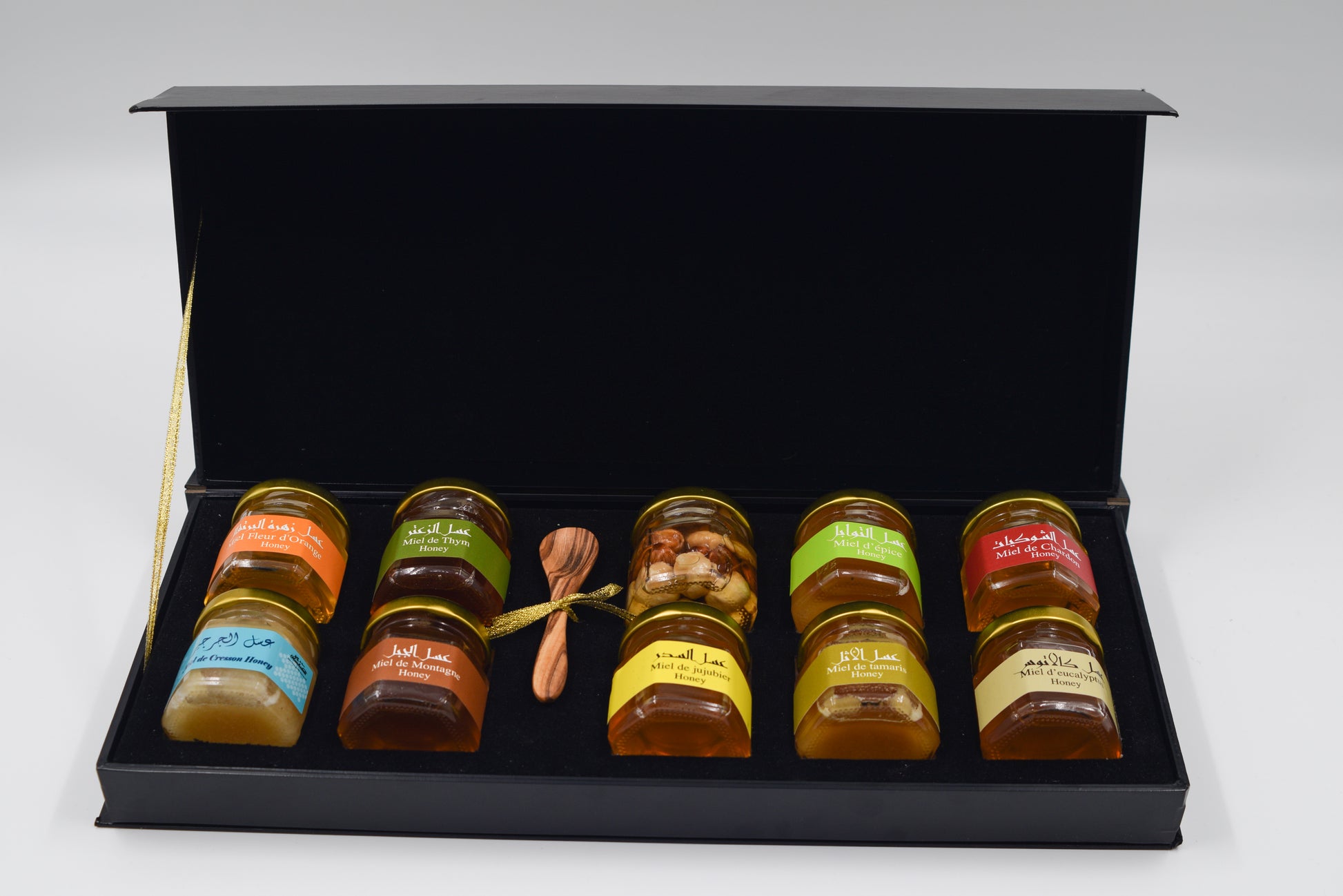 Découvrez notre Coffret de 10 Miels Tunisiens, une invitation à savourer la richesse et la pureté de la nature.