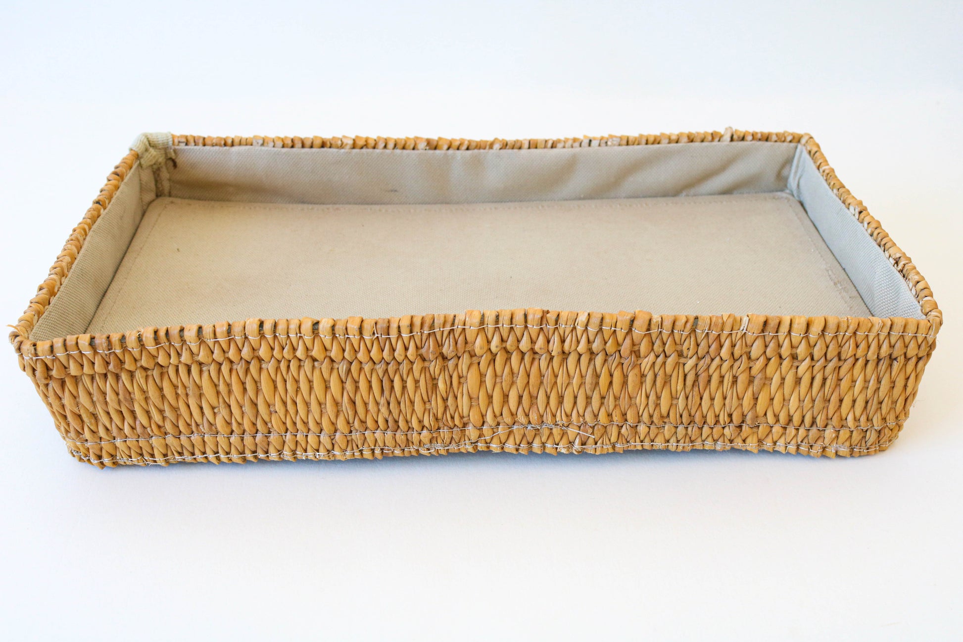 Plateau rectangulaire en jonc tressé et tissu