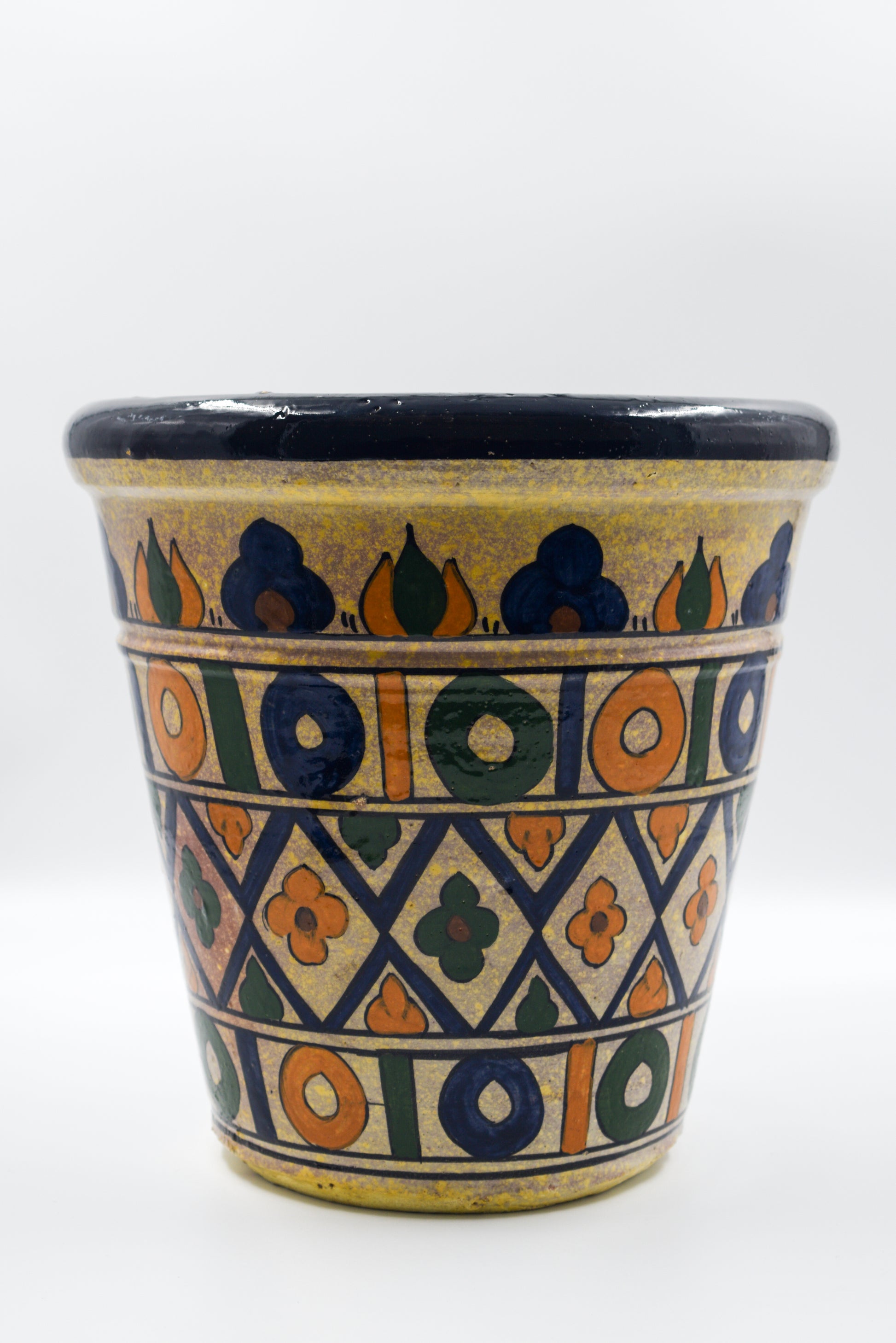 Grâce à son émaillage soigné et à ses couleurs vives, ce pot est parfait pour la décoration intérieure ou extérieure que ce soit comme cache-pot, pot de fleurs ou élément décoratif unique.