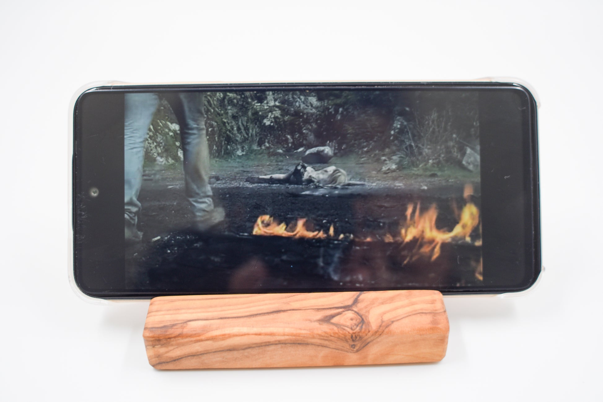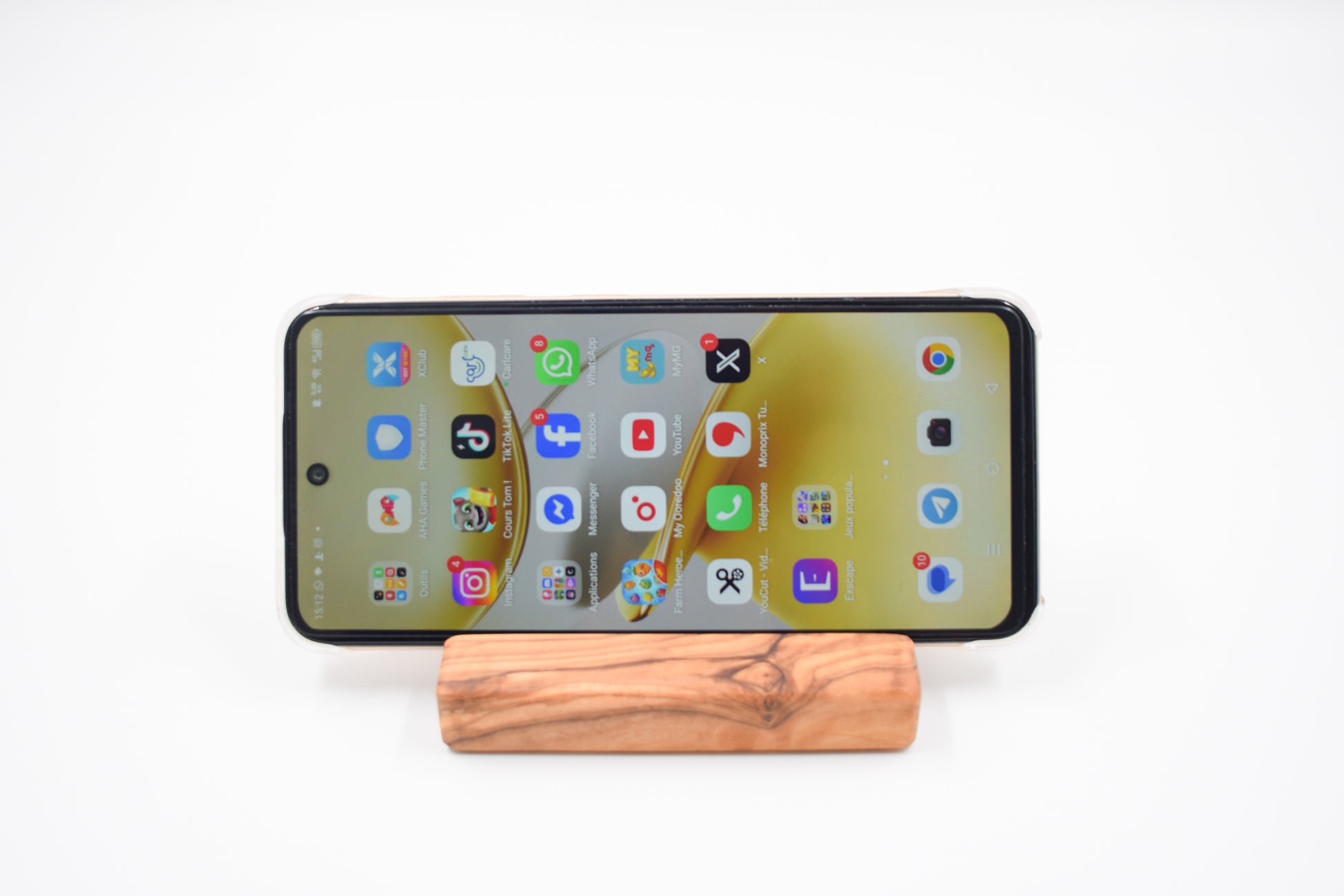 Élégant et pratique, ce support pour téléphone est façonné à la main à partir de bois d’olivier tunisien, reconnu pour sa robustesse et ses magnifiques veines naturelles.